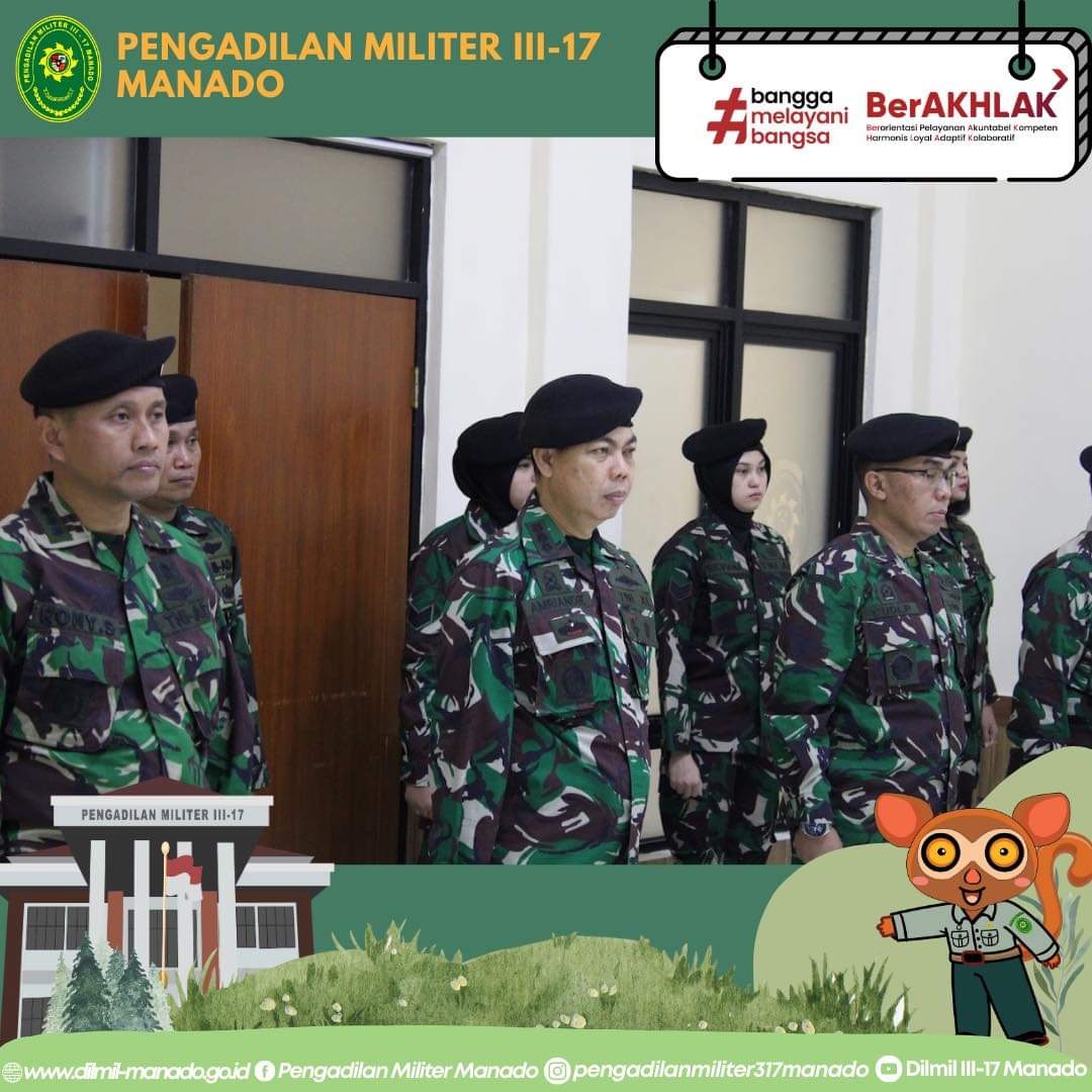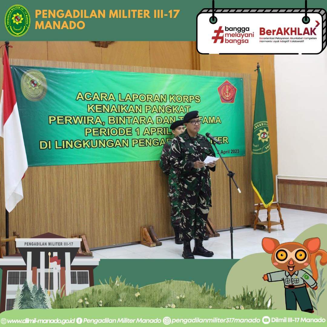 Kepala Pengadilan Militer III-17 Manado Letkol Laut (KH) Amriandie, S.H., mengikuti kegiatan Laporan Korps Kenaikan Pangkat Periode 1 April 2023 di Lingkungan Peradilan Militer yang dipimpin langsung oleh Kepala Pengadilan Militer Utama Marsda TNI Haryo Kusworo, SH., M.Hum., dan dilaksanakan di Ruang Sidang Pengadilan Militer Utama.