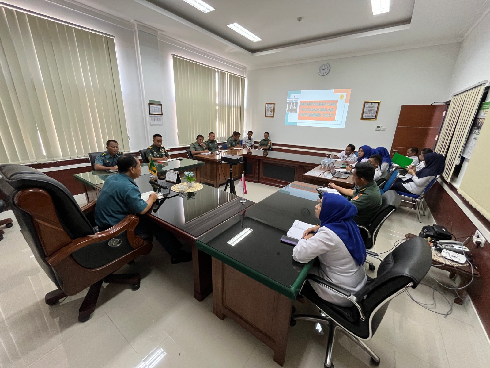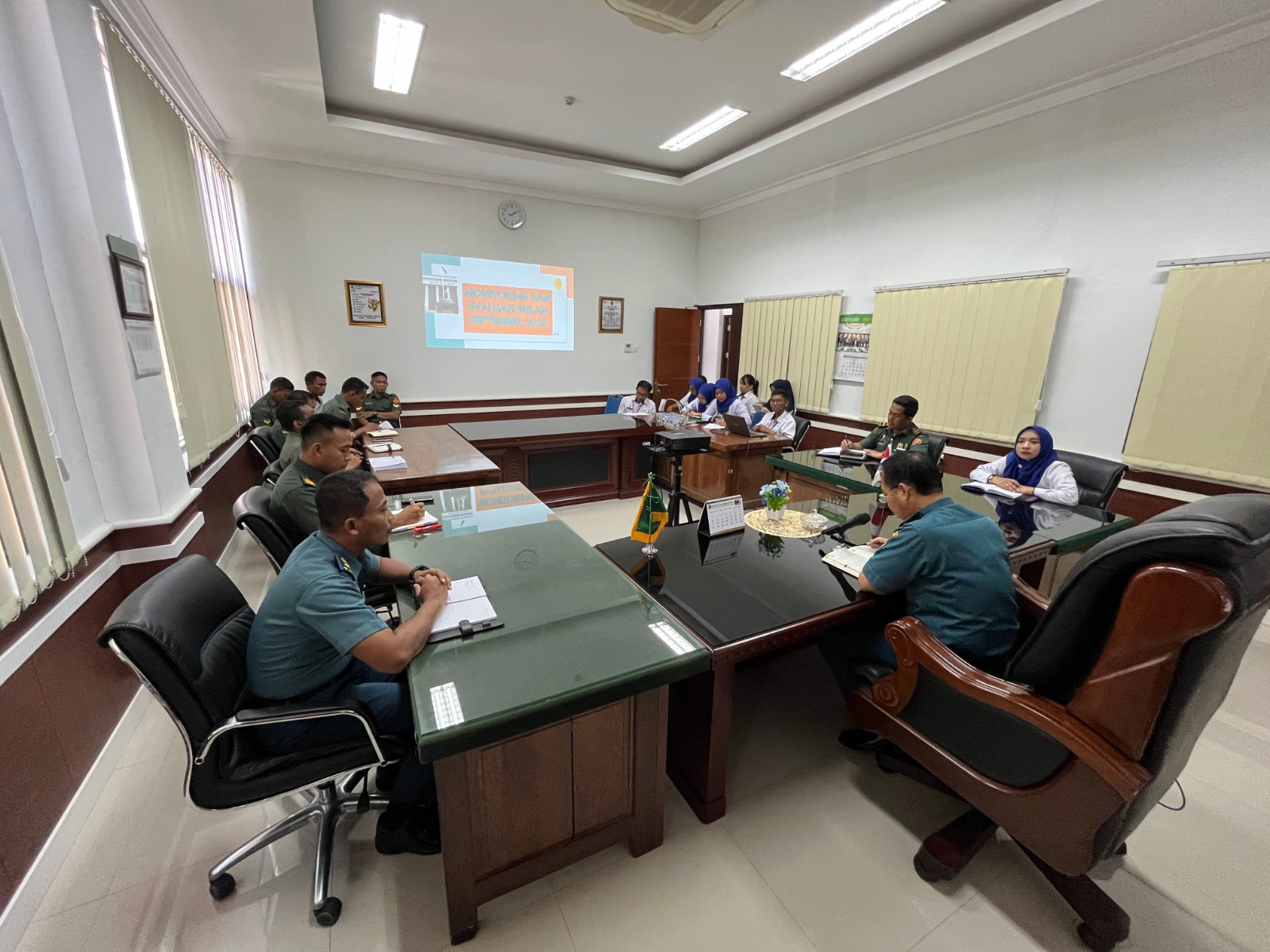 Rapat Monitoring dan Evaluasi yang dipimpin oleh Kadilmil III-17 Manado, Kolonel Laut (H) Amriandie., S.H., M.H., yang bertempat di Ruang Command Center Pengadilan Militer III-17 Manado pada bulan September 2023, merupakan kegiatan yang penting dalam mengawasi dan mengevaluasi berbagai aspek kinerja dan aktivitas pengadilan militer selama bulan tersebut. Tujuan dari rapat ini mungkin termasuk:
