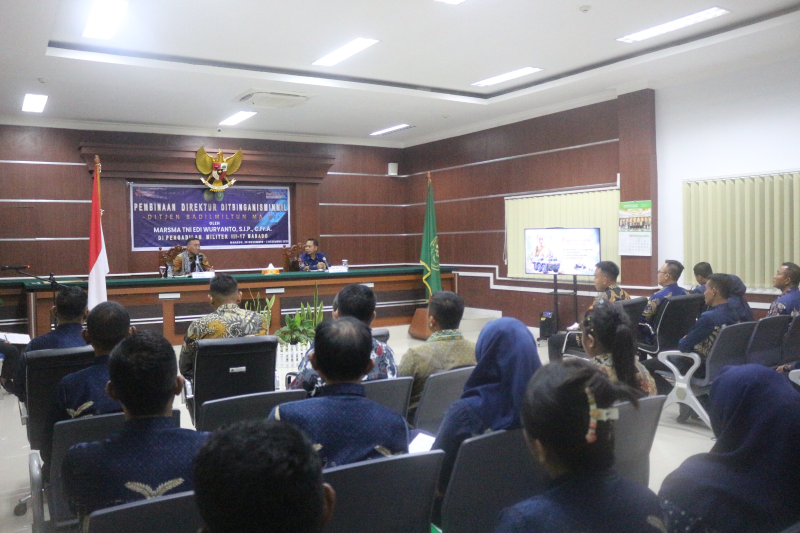 Pada kesempatan kali ini Kepala Pengadilan Militer III-17 Manado, Kolonel Laut (H) Amriandie, S.H., M.H., memberikan penjelasan gambaran tentang Pengadilan Militer III-17 Manado, mulai dari letak geografis, keadaan Perkara, penyerapan Anggaran hingga pencapaian-pencapaian yang telah diraih oleh Dilmil III-17 Manado. Kemudian dilanjutkan pemberian materi pembinaan oleh Dirbinganisminmil.