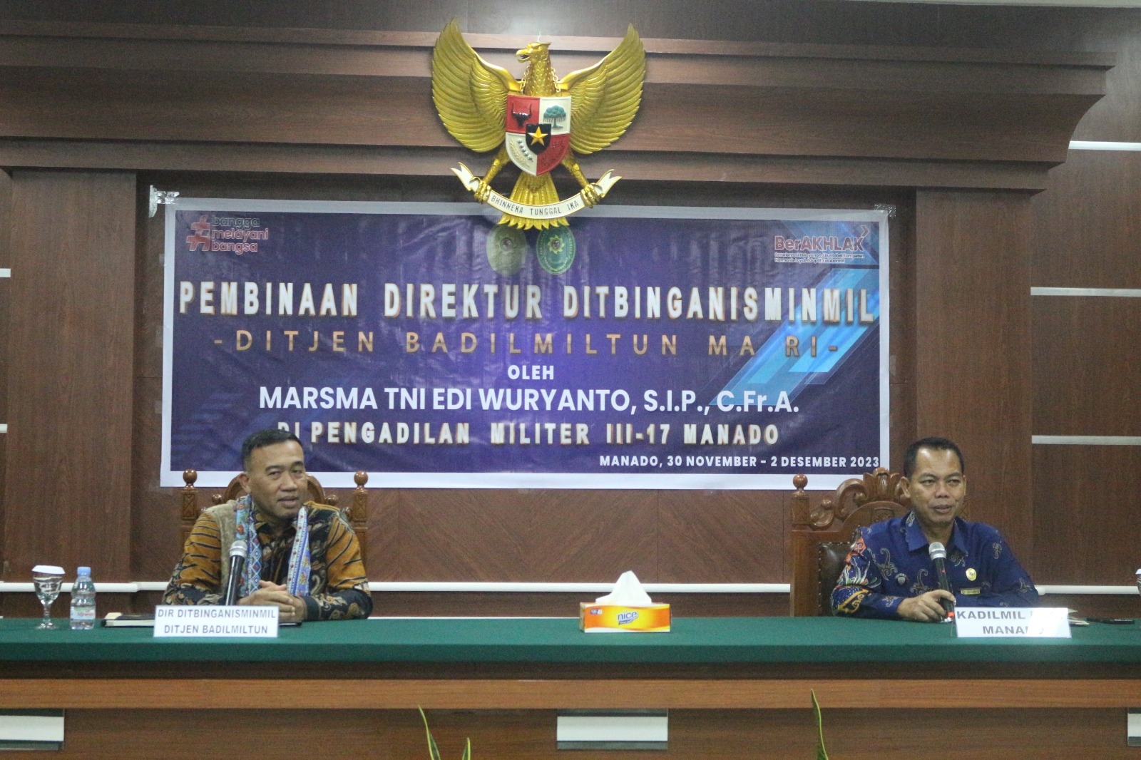 Bertempat di Ruang Sidang Utama Pengadilan Militer III-17 Manado, dilaksanakan Pembinaan oleh Direktur Pembinaan Tenaga Teknis Dan Administrasi Peradilan Militer Direktorat Jenderal Badan Peradilan Militer Dan Tata Usaha Negara Mahkamah Agung RI Marsma TNI Edi Wuryanto, S.I.P., C.Fr.A.