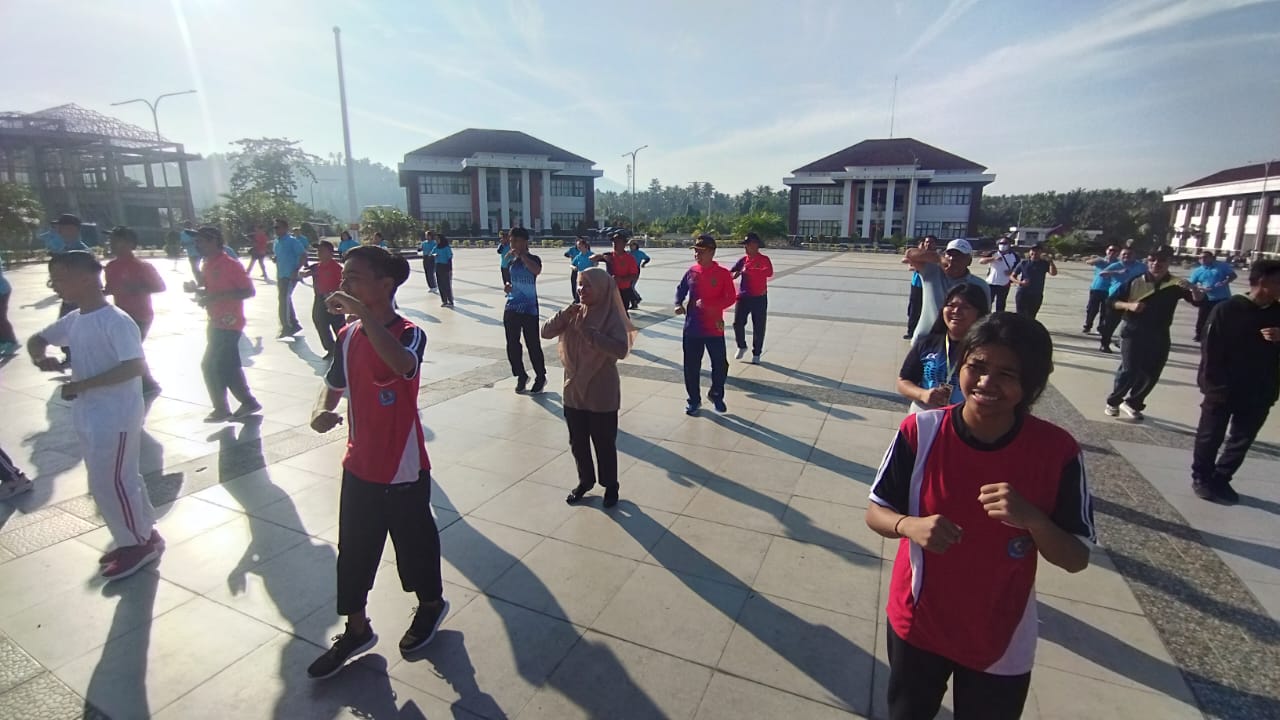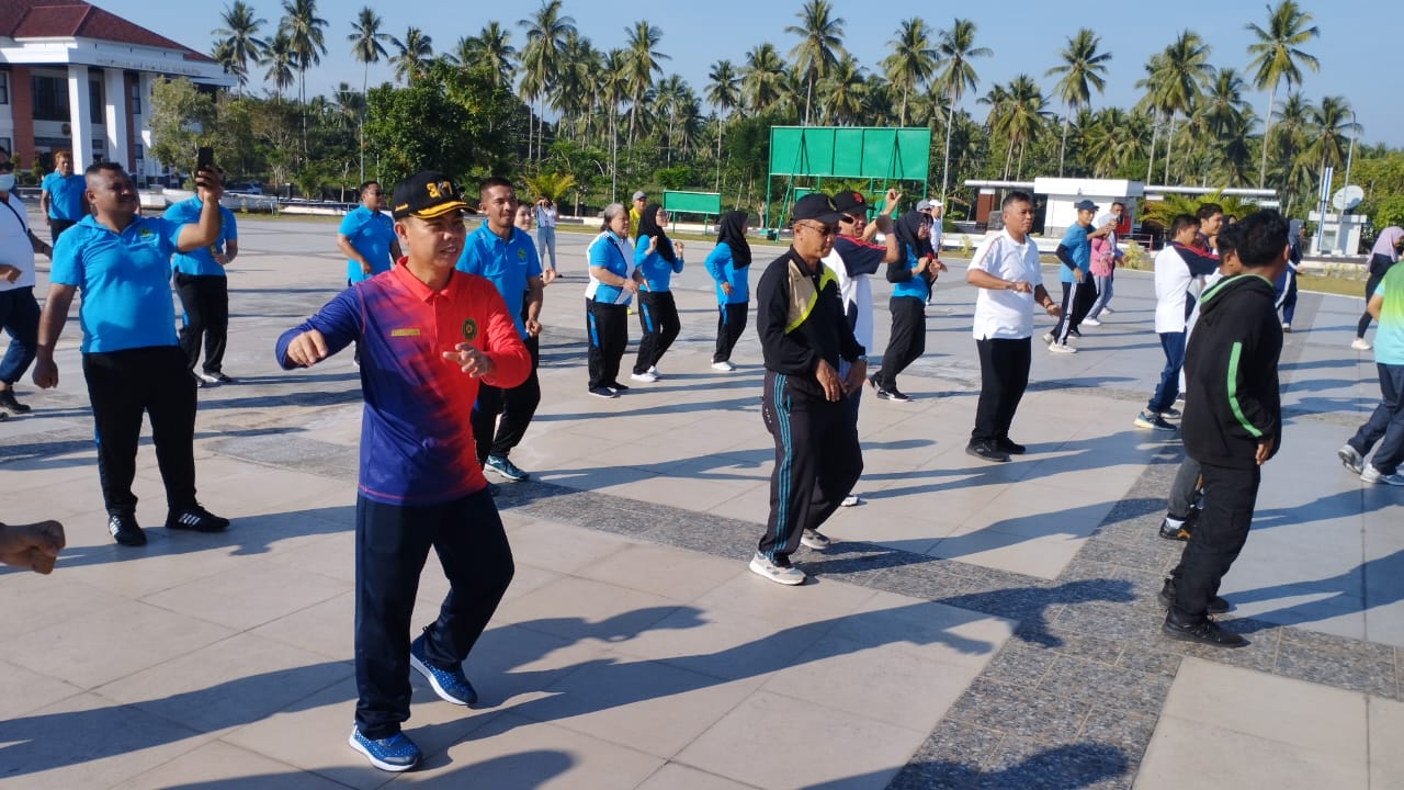 Kepala Pengadilan Militer III-17 Manado Kolonel Laut (H) Amriandie S.H., M.H. dan seluruh anggota Pengadilan Militer III-17 Manado Mengikuti Senam bersama Peradilan Terpadu yang di pimpin oleh Kapolsek Mapanget Iptu I Gusti Ayu Utami S.E